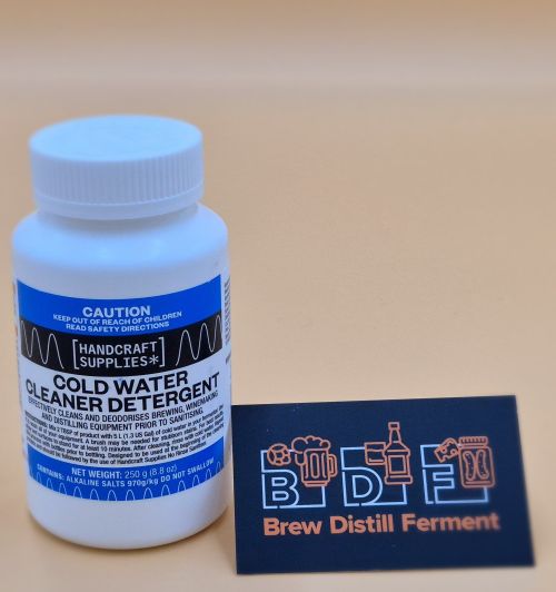 Effectively cleans and deodorises everything you use for brewing, winemaking and distilling. Cold Water ECD Cleaner Detergent is a powerful cleaner removing dirt, stains and undesirable micro-organisms, restoring your surface to its original condition. 250g bottle.