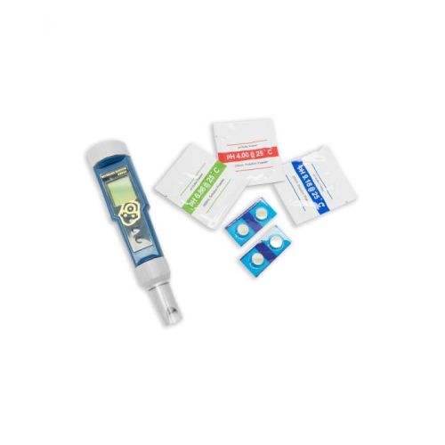 The calibration is completely digital and can be done in 60 seconds. No calibration screws that you need to turn or anything like that. Just put the pH meter into the buffer solution that comes included and then hit the calibration button.
