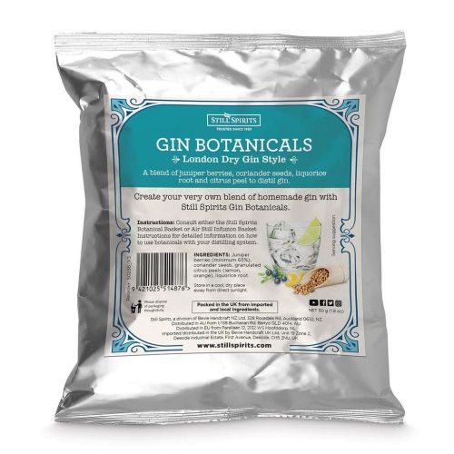 Use with the Still Spirits Botanical Basket. The Gin Botanicals Kit is a blend of juniper berries, coriander seeds, liquorice root and citrus peels. The ideal blend to make a delicious London Dry style gin.